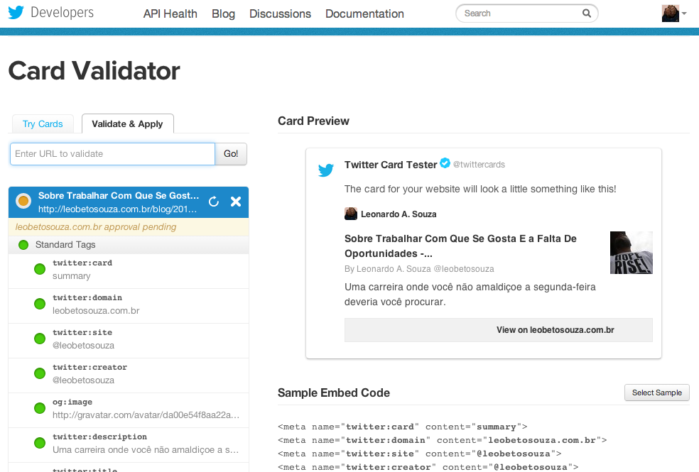 ![[Interface do Card Validator [screenshot do Card Validator mostrando que meu card é válido e esperando aprovação]]](/images/posts/2014-03-04-configurando-twitter-cards/screenshot-card-validator-pendente.png)